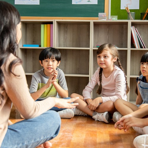 Kids participate in a Bible lesson specifically for them to apply to their life.